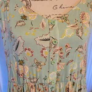 Torrid Super Soft floral midi dress size 2 with pockets. Soft stretch knit in a pretty mint green floral print, sleeveless with button-front detail and flowy skirt. Comfy, flattering, and easy to dress up or down.
