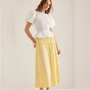 Damson Madder Charlotte Midi Skirt in Yellow