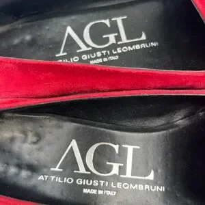AGL Attilio Giusti Leombruni Red Suede Gold Bar Loafers Flats N542004 40 Italy