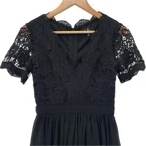Lulus Romantic Dark Fairycore Witchy BohoBlack Lace V-Neckline Mini Dress Size Small