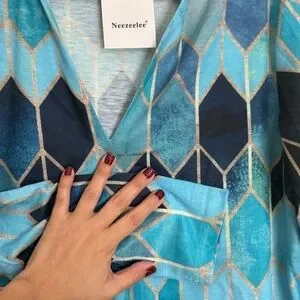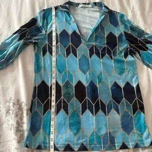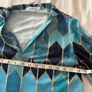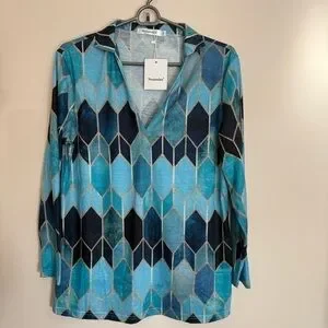 NWT Neezeelee s Color Block Casual Tunics Collar Long Sleeve V Neck Blouse