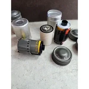 This product is a lot of vintage aluminum film canisters with undeveloped 33mm film. These film canisters are compatible with 33mm film and were manufactured in the United States. They are in good condition and have not been modified. Perfect for vintage photography enthusiasts looking to experiment with old film stocks.