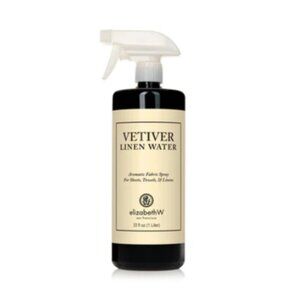 ElizabethW Vetiver Linen Water is a refreshing fabric spray designed to lightly scent linens and household fabrics. It features the clean, green aroma of vetiver grass with bright citrus notes and bergamot, creating a fresh and calming fragrance.