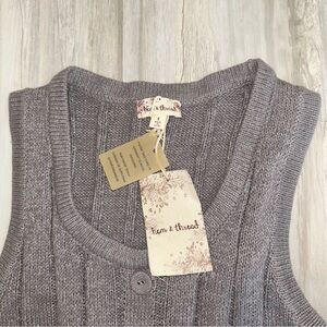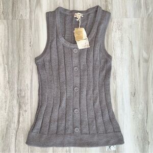 NWT sleeveless ribbed knit tank with a front button closure.