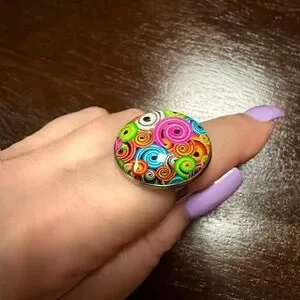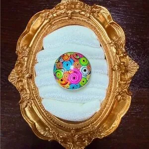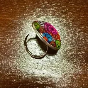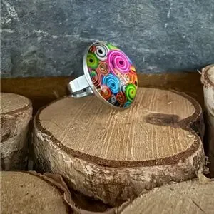 Vibrant, multicolor swirl, glass dome ring.