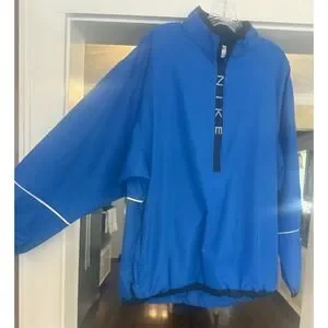 Nike Pullover Athletic Royal Blue & Black Windbreaker 1/2 zip. Poly. Mens. XL