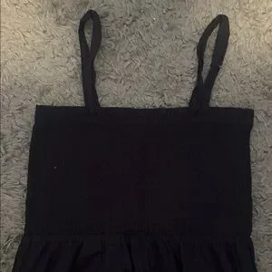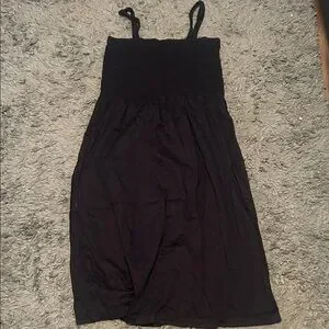 Chic black midi dress with a classic design. Perfect for versatile styling.