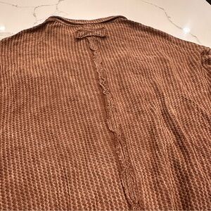 Zenana Thermal Button Down Shirt Womens Size L / XL Brown Cotton Waffle Stretch
