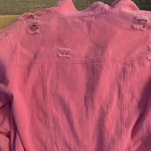 Womens Pink Denim Jacket Distressed Cropped Button Front Size L