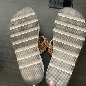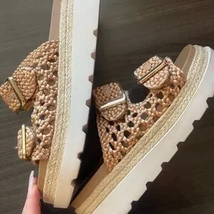 Madden Girl Tan Braided Double-Buckle Platform Sandals with Gold Buckles