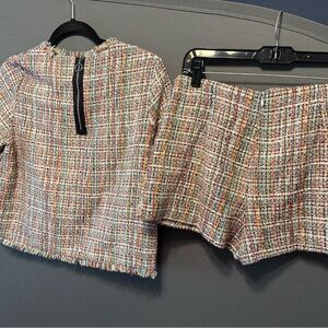 Zara Multi-Color Tweed Short Sleeve Top & Skort