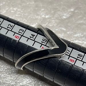 Stylish silver and black geometric ring. Perfect for a modern look. Size 6.5 to 7 see photo to ensure your size works good preloved condition sold as photographed.