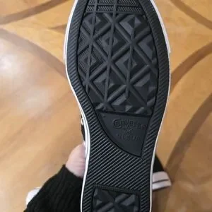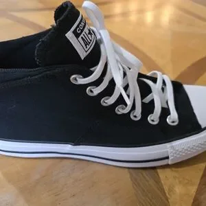 Classic Converse mid-top sneakers in black. Features white laces and logo details.