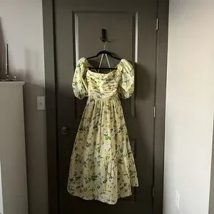 A gorgeous light yellow floral print. Worn a few times and washed, but still in great condition with no flaws, pilling, or staining. Fits true to size per Abercrombie sizing. A perfect spring/summer dress!