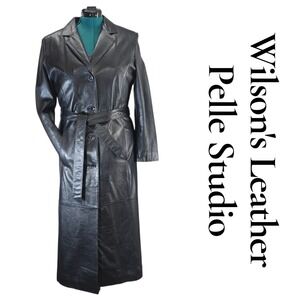 Wilsons Leather Pelle Studio Black Trench Coat Belted Thinsulate Liner M