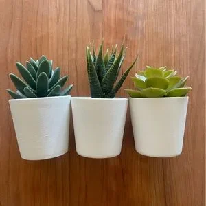 Enhance your space with this charming trio of green succulents in sleek white pots. Perfect for adding a touch of nature to any room.