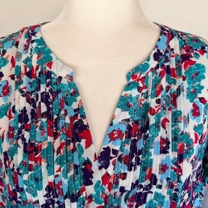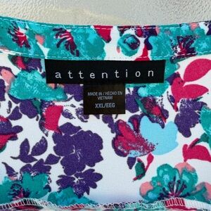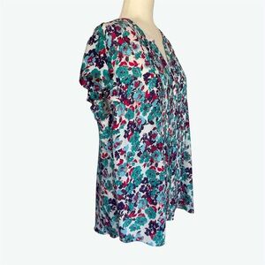 Attention Multi-Color Floral Pintuck Front Flutter Sleeve Blouse ~ Women’s XXL