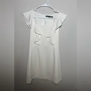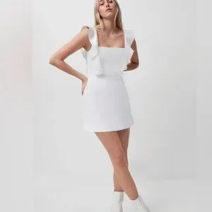 FRENCH CONNECTION Womens White Stretch Zippered Ruffled Trim At Shoulders size 6
