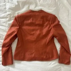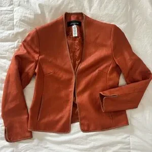 Orange blazer by Jones New York. Size petite small. The front clasps together in the front of the middle of the waist. #blazer #orange