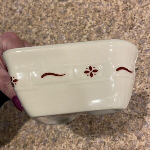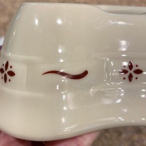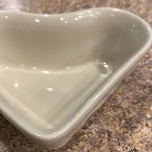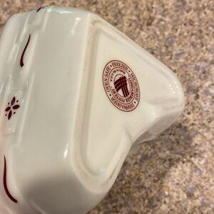 Longaberger Small Heart Vitrified Pottery Dish Red and Ivory Woven Traditions Vitrified Pottery. This is retired and was made in the USA. It has age, it’s been used and shows all over signs of wear/use. It has scratches, swirl marks and has stains/ discolorations but the stains are mostly on the bottom where it touches the counter. It may have other imperfections since it’s isn’t new and is vintage. Measurements are approximate and colors may be off because of lighting. Bundle with other items from my closet and only pay 1 shipping fee up to 5 lbs packaged.