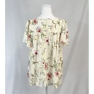 Berkeley Boutique Sz S Cream Floral Flutter Sleeve Top Prairie Cottagecore NWT