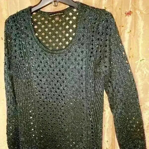 Rock & Republic Black Metallic Open-Knit Sweater – Size L