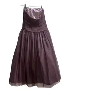 Monique Lhuillier Prom Bridesmaids Strapless Chiffon Gown Plum Purple SZ 10 EUC
