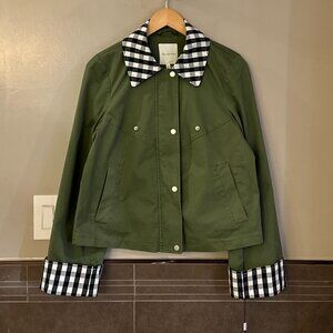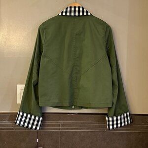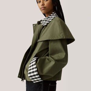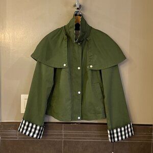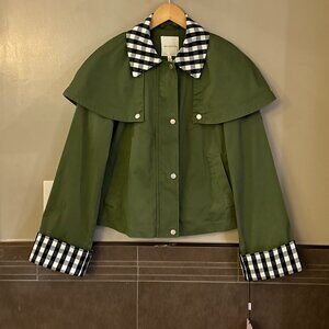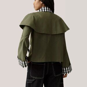 Avec Les Filles Cotton-Blend Gingham Trim Cape Jacket (Olive Green)