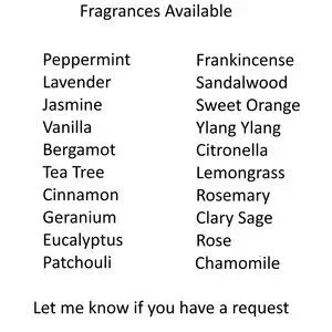 Various aromas available, if you would like a scent not currently on the list, let me know