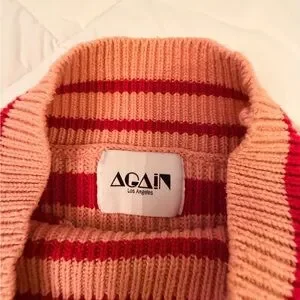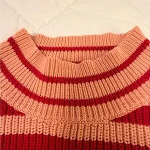 Striped Peach and Red Ribbed Turtleneck Sweater