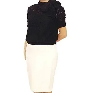 DOLCE & GABBANA Lace Blouse Bow Scarf Collar Tie Neck Black Short Sleeve Crop 44