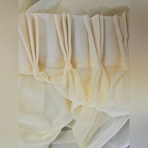 Beautiful vintage 1970s sheer curtain panel in a soft buttery yellow tone. This lightweight sheer adds a warm glow to natural light and creates a lovely nostalgic look for farmhouse, cottagecore, or retro interiors.