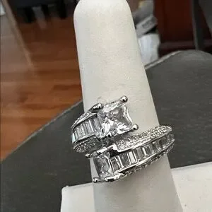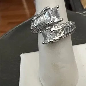 Sparkling Silver-Tone Clear Crystal Wrap Ring - Elegant Women’s Jewelry CZ