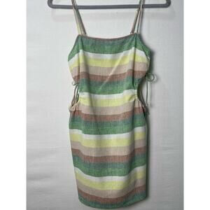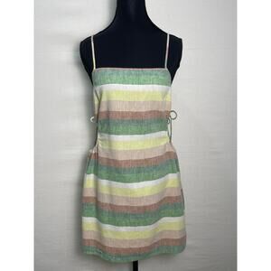 Aerie Linen Striped Mini Dress with Side Cutouts Size Small
