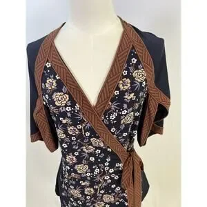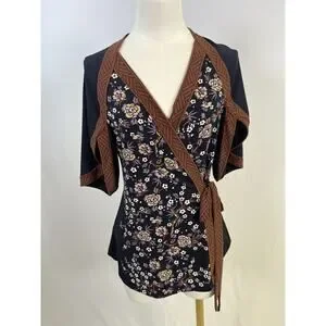 VTG BCBG Gorgeous Y2K Asian Print Kimono Wrap Top Women’s Small Blue Brown