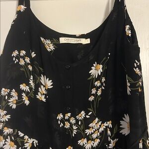 Beautiful flown black crepe daisy print sundress. Midi length with smocked panels on bodice for comfortable fit. Worn once.