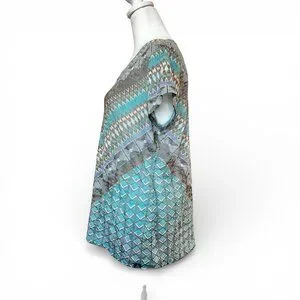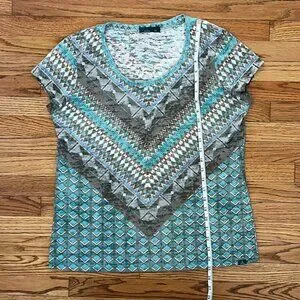 Prana XL Geo Print Hiking Top Teal REIcore Gorpcore Trail Active Tee