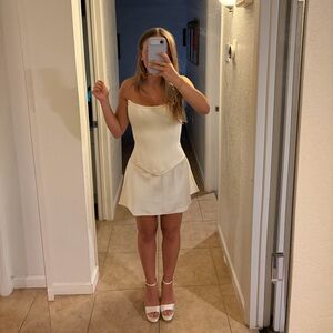 Gorgeous ivory corset and skirt set, sizing was custom made from an Etsy designer but the skirt has an elastic waistband and the corset is adjustable, I typically wear a 2-4. Does not include a scarf, just the corset and the skirt.