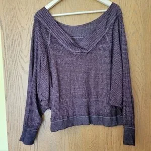 We The Free oversized off the shoulder v-back batwing waffle knit sweater S