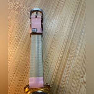 Thomas Kinkade Lighthouse Art Watch Pink Strap Gold Tone Cottagecore