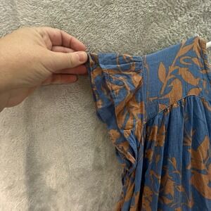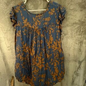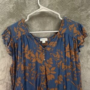 Market & Spruce Blue Brown Floral Flutter Sleeve 2X Boho Cottagecore Peasant