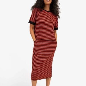 Clare V. Le Tube Skirt in Black & Poppy Stripe | XXL | EUC