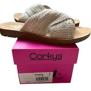 NEW Corkys Dig It Sandals Women's Size 7 Ivory Boho Coquette Twee Slides Comfort