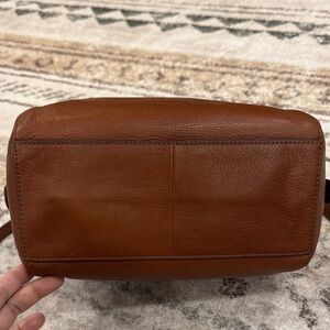 Rachel satchel. Elegant brown leather handbag with a classic design. Perfect for any occasion. Slip pockets outside front and back.