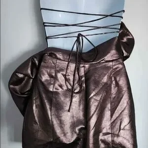 Zara Metallic Chocolate Brown Mini Dress with Sculptural Rose Detail