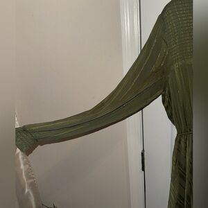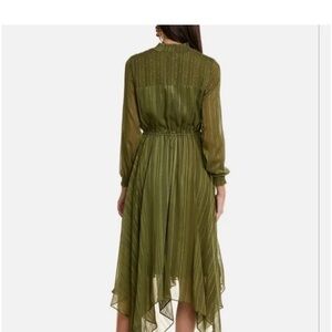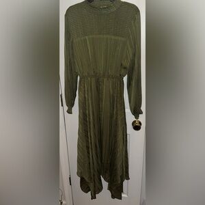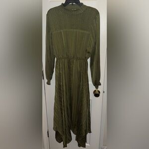 NANETTE NANETTE LEPORE Smocked Handkerchief Hem Midi Olive Green Dress