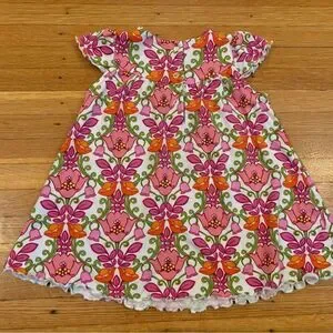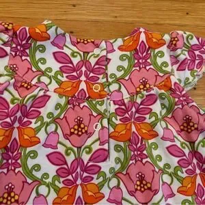 Vera Bradley Baby Lillie Bell short sleeve dress and bloomers. Comes with matching bloomers. Soft. White/pink/orange/green. 3 snaps on back. 100% cotton. Size 6-9 months. Great condition!