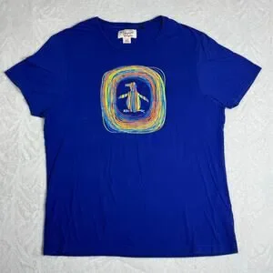 Original Penguin Graphic T-Shirt Blue Short Sleeve Men's L Colorful Logo Cotton