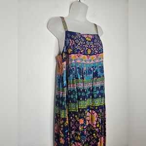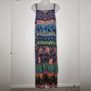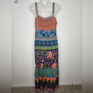 NWT Natural Life Bohemian Rainbow Floral Smocked Back Floral Tricia Maxi Dress