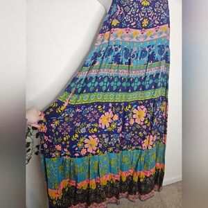 NWT Natural Life Bohemian Rainbow Floral Smocked Back Floral A-line Tricia Maxi Dress